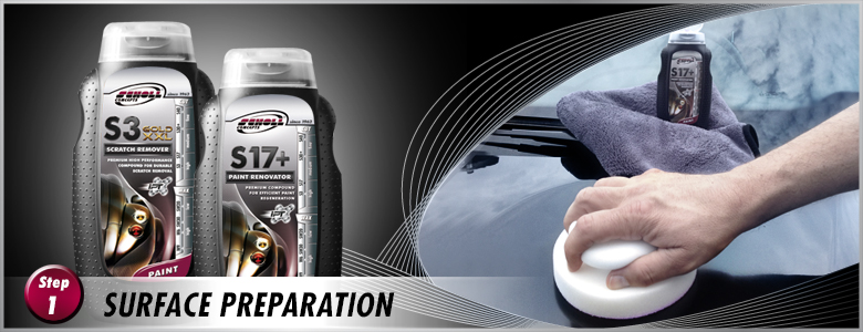 Lavez soigneusement le véhicule avec ShamPol. Eliminez les rayures et la peinture usée avec notre rénovateur de peinture S17+ ou, à défaut, avec notre éliminateur de rayures S3 Gold.