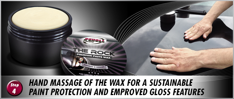 Il est intéressant de noter que la carnauba, la cire naturelle la plus résistante au monde, fond à la température de notre corps. C'est pourquoi nous recommandons de masser la surface de la peinture, après avoir essuyé environ 90 % des résidus de cire, avec la paume de la main pour faire fondre les molécules de cire et assurer une liaison étroite entre la peinture et la cire.