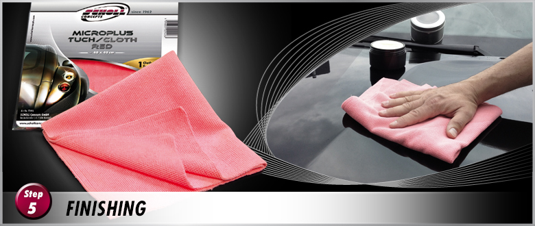 Ensuite, polissez délicatement l'ensemble du véhicule avec le chiffon MicroPlus rouge afin d'éliminer les résidus de cire.